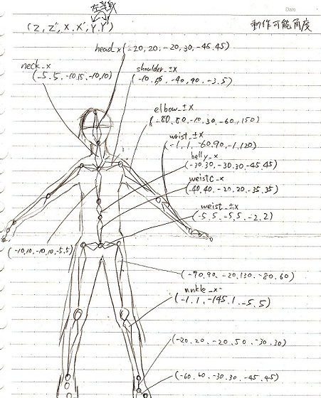 しかしボーンのセットが終わり、いざ動きを付けようとすると変な動き方をしたり(ex:腕を動かすと脇腹が付いてくる)、角度制限がを厳しくしすぎて作れないポーズがあったり…。