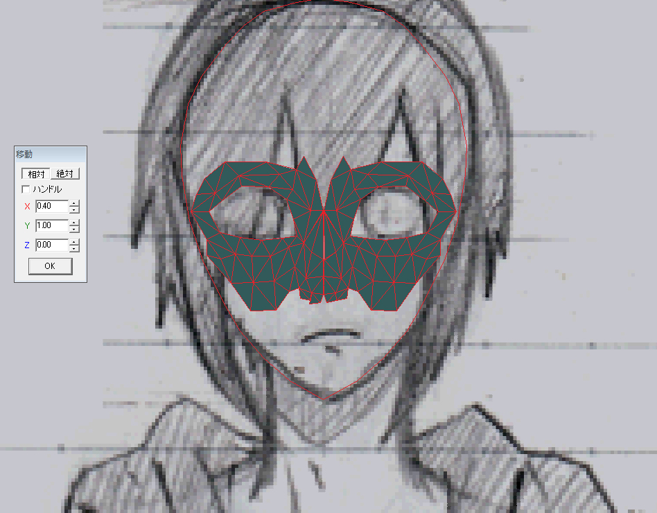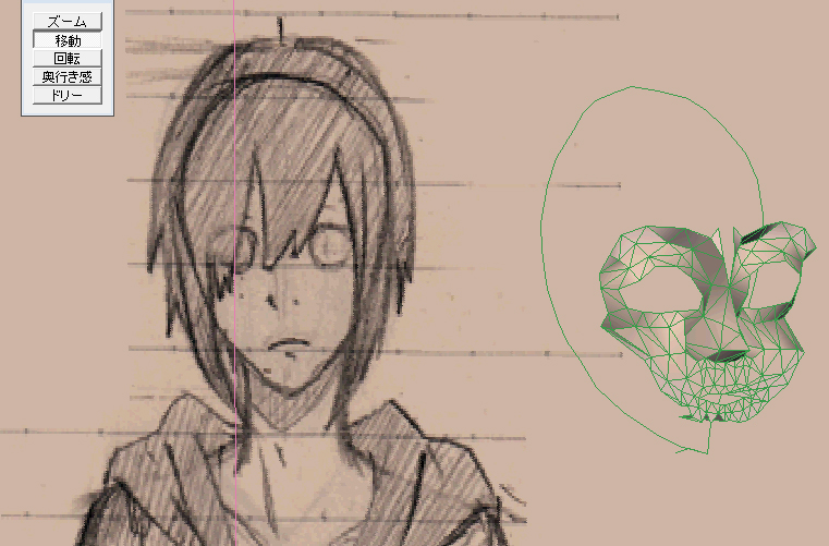前回同様下絵用のポリゴンを配置して、素材指定しました。(ここで何故か左右が逆に表示されて仕方なく画像を反転した。何故)