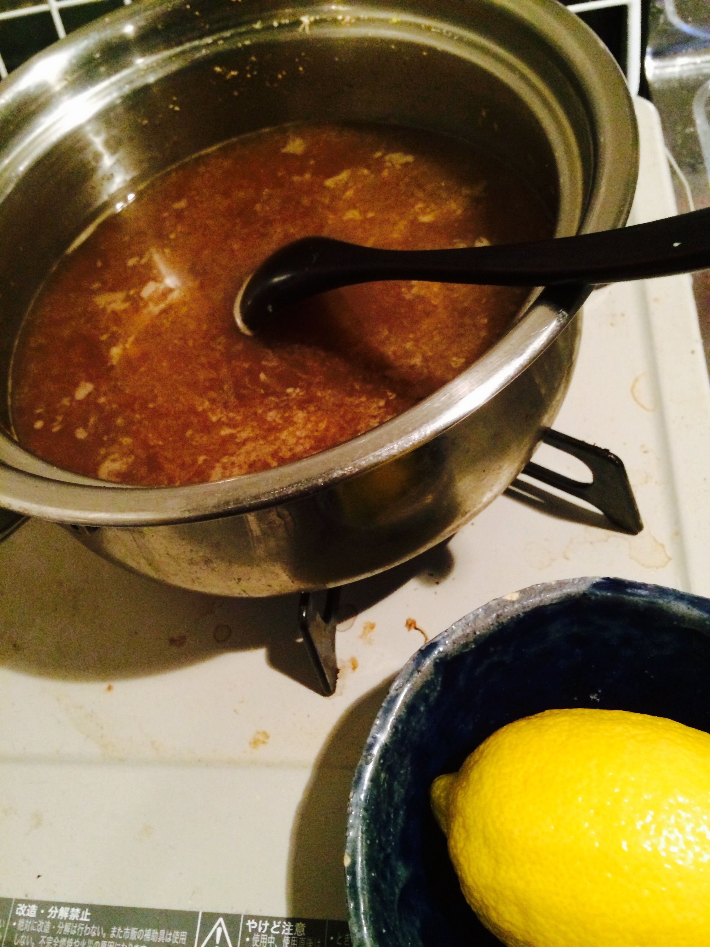 生姜をそのまま摩り下ろして、鍋に水と砂糖と一緒に放り込み